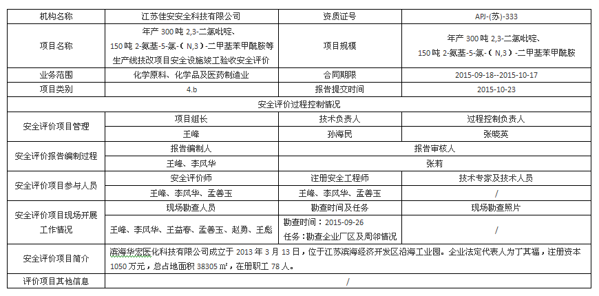 濱海華宏醫(yī)化科技有限公司 年產(chǎn)300噸2,3-二氯吡啶、150噸 2-氨基-5-氯-(N,3)-二甲基苯甲酰胺等生產(chǎn)線技
